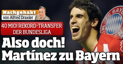 Ngay sau khi đăng tải thông tin này, Bild đã khẳng định, Javi Martinez hoàn toàn xứng đáng với mức giá kỉ lục này, ít nhất với những gì ngôi sao 23 tuổi này đã thể hiện trong màu áo Athletic Bilbao. Trước khi trở thành tài năng trẻ đáng chú ý của bóng đá Tây Ban Nha, tiền vệ này đã gia nhập Bilbao từ Osasuna với mức giá 6 triệu euro cho dù năm đó, anh mới bước sang tuổi 17.