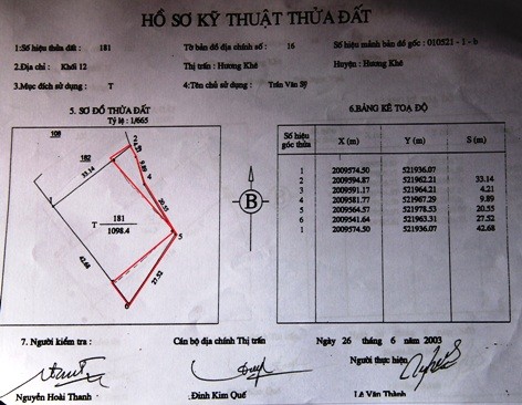 Phó chủ tịch UBND huyện Hương Khê cho biết thêm: Với trách nhiệm quản lý nhà nước thì sẽ chỉ đạo phòng chuyên môn thẩm định. Phòng Tài nguyên môi trường chưa ký hồ sơ vì tòa án chưa tuân thủ hồ sơ, còn thị trấn ký vào hồ sơ thì chúng tôi sẽ cho xem xét lại. Quy trình cấp sổ đỏ cho ông Vinh chắc chắn không có vấn đề gì.