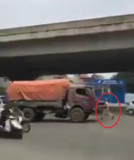 Sau khi được sự hỗ trợ của người dân và lực lượng cảnh sát 113, tài xế xe tải mới chịu dừng lại.