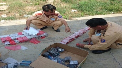 Qua kiểm tra tại chỗ, phát hiện trên xe có 2.114 chiếc điện thoại hiệu Sam Sung, Nokia, 5.800 viên pin, 3.000 sạc pin các loại và 10.000 chiếc tem nhãn hiệu Nokia, 30 bộ loa.