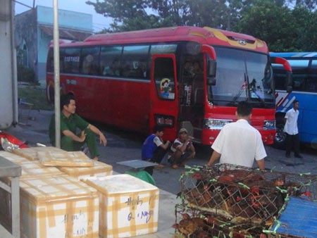 Xe khách Thành Liên vận chuyển hơn 100 con gia cầm các loại và cũng không có nguồn gốc… Tài xế Trần Lâm Sinh (SN 1971, ngụ huyện Sông Cầu, Phú Yên) khai số hàng này vận chuyển từ Phú Yên vào cầu vượt Sóng Thần (TP.HCM) tiêu thụ.
