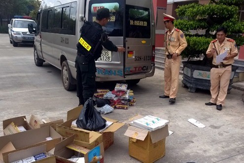 Qua kiểm tra, Cảnh sát giao thông phát hiện chỉ có 3 thùng carton trong chứa bánh kẹo thật, các thùng còn lại bên trong đều chứa hàng ngàn bao thuốc lá lậu như 555, Capri, Hero và Jet.
