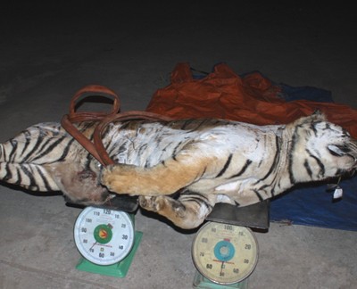 Con hổ đã chết nặng 120kg được vận chuyển trên xe tải