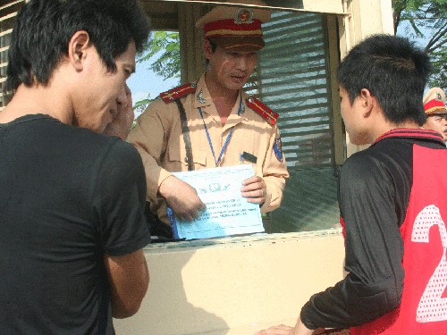 Kiểm tra giấy tờ xe có dấu hiệu vi phạm Luật Giao thông đường bộ. Ảnh: Đỗ Du