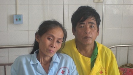 Đôi vợ chồng người Lào sang Việt Nam chữa bệnh hiểm nghèo. Ảnh: Văn Thanh