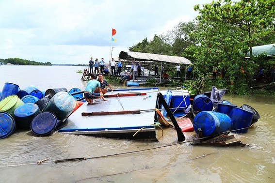 Vụ tai nạn khiến chiếc tàu bị chìm xuống sông, chị Thuý Em và con gái tử vong. Riêng anh Thuận và con trai được những người trên sà lan cứu vớt.