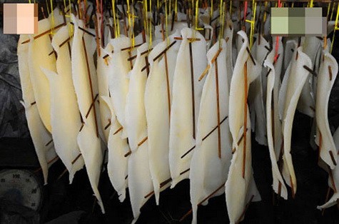 Sau đó chúng được xấy khô thành các món ăn “khoái khẩu” như bóng bì, nem chua