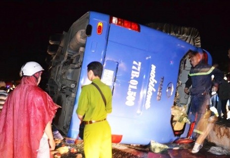 Tối 25/4, một chiếc xe khách đã lật nhào trên Quốc lộ 1A đoạn qua thôn Trung Trinh, xã Xuân Phương, thị xã Sông Cầu, tỉnh Phú Yên khiến 11 người bị thương.