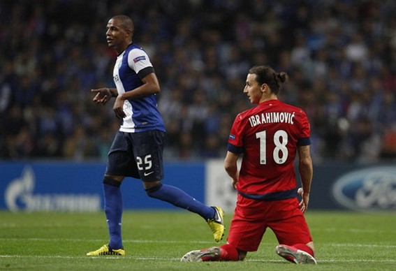 Ibrahimovic (phải) và PSG của anh chịu trận thua đầu tiên mùa này, trên sân của Porto- Ảnh Getty