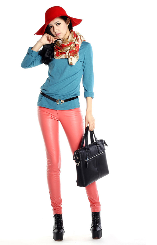 Nhưng hot nhất phải kể đến những chiếc quần bút chì giả da màu neon. Đây là xu hướng hot nhất trong mùa Xuân - Hè năm nay.