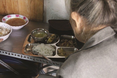 Sau khi mua phiếu và chờ cơm, cô lấy kèn harmonica ra thổi. Khi tình nguyện viên mang cơm ra, nhìn phần ăn đầy đủ cơm, thịt kho, rau xào, canh và cả chuối, cô ngơ ngác: “Tôi chỉ mua phần 2.000 đồng thôi mà”. Tình nguyện viên tươi cười giải thích: “ Ở đây, dĩa cơm nào cũng có giá như nhau cô ạ”. Nghe vậy, cô mừng rỡ cảm ơn rồi ăn một cách ngon lành.