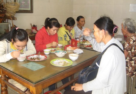 10 giờ 30, quán cơm đã khá đông khách. Bà Nguyễn Thị Gái (quê ở Quảng Ngãi) vừa ăn cơm vừa cho biết: Ngày nào tui cũng ăn ở đây vì hợp túi tiền, lại ngon. Ăn xong, bà lại mua thêm 1 suất cho buổi chiều.