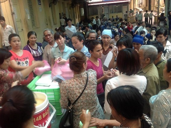 Bác sỹ Bùi Thị Xuân, trực thuộc khoa ngoại - phụ khoa, bệnh viện K Hà Nội, cho biết: "Tôi đã thấy các anh chị vừa phát cơm, phát cháo vừa khóc vì thương những bệnh nhân nghèo. Tôi cũng đã thấy cả những bệnh nhân vừa nhận bát cơm, bát cháo vừa khóc. Thậm chí, bệnh viện chỉ cho phép phát cơm ở sân nhưng các anh chị vẫn xin đem cơm lên tận phòng cho những bệnh nhân không đi được."