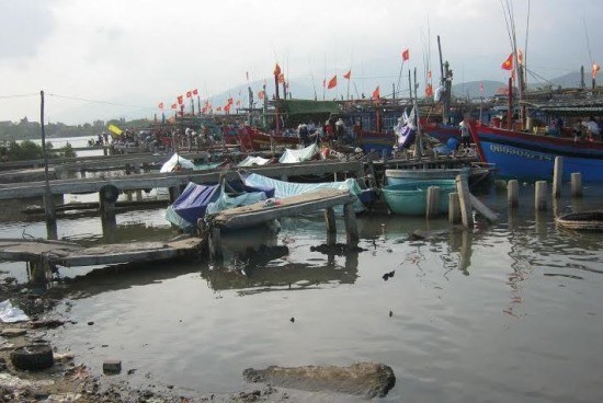 Tàu cá của ngư dân đang vào tránh bão ở Lạch Roòn, xã Cảnh Dương, huyện Quảng Trạch