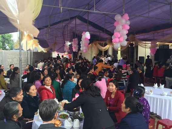 Theo chủ nhà, toàn bộ các suất ăn trong đám cưới được đặt tại cơ sở kinh doanh dịch vụ ăn uống Toàn Dịu với tổng cộng 11 món ăn bao gồm: dạ con luộc, heo bản, dê xúp, gà luộc, tôm hấp, cháo thập cẩm, mực luộc, bánh lọc, sữa chua, bánh mỳ, bánh ướt, nước đá dùng liền và bia huda, phục vụ cho trên 200 khách đến dự.