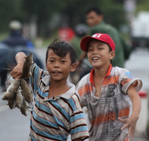 Trung thu, những cơn mưa liên tục trút nước xuống quê hương chúng và đó chính là cơ hội cho những “sát thủ nhí” này trổ tài vây bắt chuột. Nhìn những đứa trẻ lấm lem trên tay cầm lũ chuột cũng không ít người ngán ngẫm nhưng đó là “chiến tích” và trò chơi có ích của những đứa trẻ ở vùng lũ…
