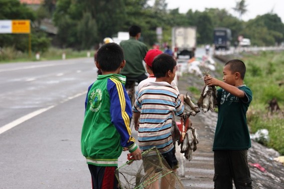 Nhiều đứa trẻ vùng quê cứ hết giờ học là phải bắt tay vào làm việc giúp đỡ gia đình, tuổi nhỏ làm việc nhỏ nhưng mà điều chúng thích nhất là rủ nhau ra đồng để bắt chuột… Một nhóm dăm ba đứa cùng nhau quây hang chuột để đào bới và hò hét để bắt những con chuột chuyên phá hại mùa màng ở đây.