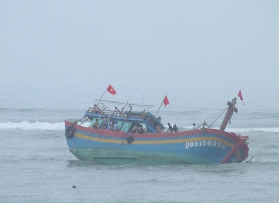Chiếc tàu cá QB 91568 TS đã bị mắc cạn khi trên đường ra khơi