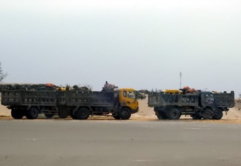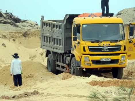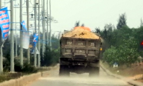 Xe tải cơi nới thành thùng, chở cát san lấp mặt bằng không tấp bạt chạy rơi vãi trên đường Võ Nguyên Giáp, xã Bảo Ninh, TP. Đồng Hới. Mặc dù bị Thanh tra giao thông xử phạt nhưng vẫn ngang nhiên vi phạm...