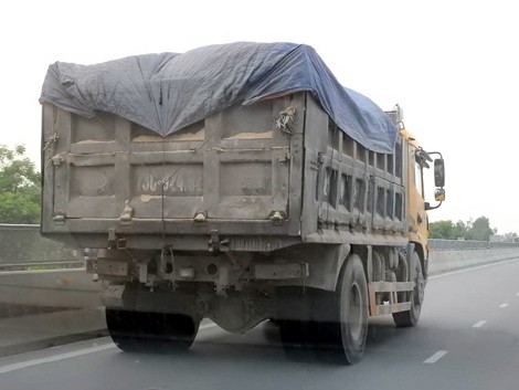Rất nhiều xe đeo biển hiệu "Công ty 179" vô tư chạy trên đường mà không che bạt trên thùng xe