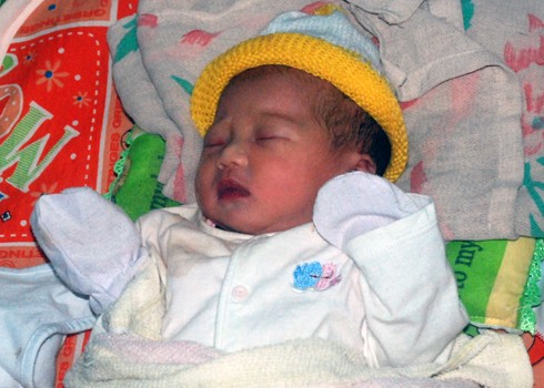 Bé nặng 3 kg, mũi cao, da hồng hào được vợ chồng ông Thanh nhận làm con nuôi.