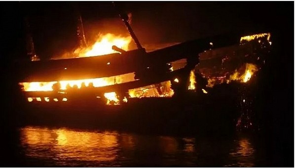 Hai tàu của ngư dân Quảng Ngãi bùng cháy như đuốc trong đêm, thiệt hại khoảng 7 tỷ đồng.