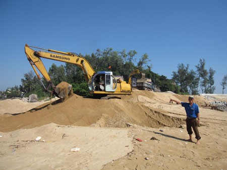 Ngư dân phải góp tiền để thuê máy múc nạo vét cửa biển.