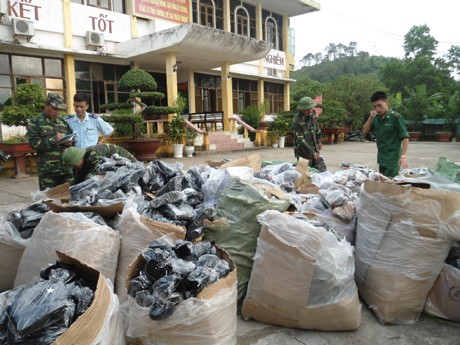 Tổng lượng hàng hóa trên bè gồm 1.428 đôi giày giả da được đựng trong 35 bao dứa. Toàn bộ số hàng trên không có giấy tờ chứng minh nguồn gốc.