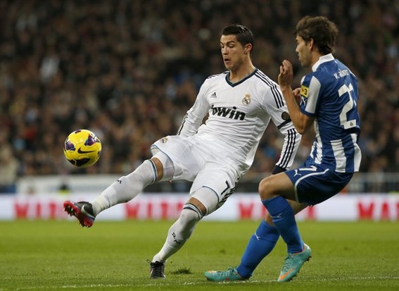 Phút 48, Ronaldo (7-Real) chuyền bóng cho Coentrao xâm nhập vòng cấm và đặt lòng vào góc xa hạ gục thủ môn Espanyol, nâng tỷ số lên 2-1 cho đội bóng Hoàng gia.