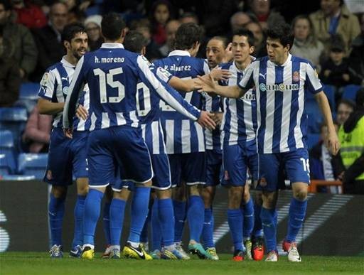 Espanyol: Francisco Casilla; Juan Forlin, Diego Colotto, Hector Moreno, Victor Alvarez; Verdu, Javi Lopez; Victor Sanchez, Simao, Wakaso Mubarak; Sergio Garcia.