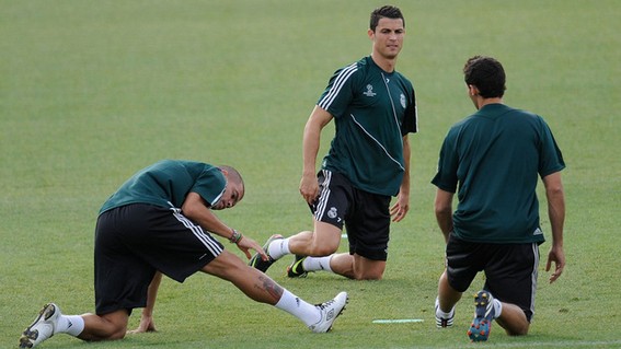 Trong buổi tập, các cầu thủ được chia làm 2 nhóm: nhóm một là những cầu thủ ra sân trong trận đấu với Ajax, tiến hành các bài tập chạy cộng thêm các bài tập nhẹ với bóng (Casillas, Adan và Jesus tạo thành một nhóm riêng biệt); nhóm hai gồm các cầu thủ còn lại tiến hành các bài tập làm nóng cơ thể với cường độ tăng cao.