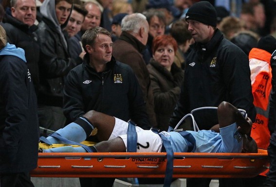 Do dính chấn thương gối, hậu vệ cánh Micah Richards đã phải nhờ tới sự trợ giúp của bình oxy và cáng cứu thương để rời sân. Tình thế này khiến hàng thủ Man City khủng hoảng nghiêm trọng.