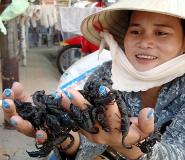 Bọ cạp được bày bán ở chợ Tinh Biên