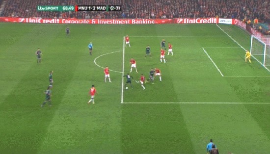 Trước chiến thuật hợp lí phòng ngự phản công của Man Utd, Cristiano Ronaldo gần như “mất tích” trong suốt 90 phút thi đấu tại Old Trafford. Nhưng vào thời điểm Real cần 1 bàn thắng để giành tấm vé đi tiếp, ngôi sao người Bồ đã nổ súng.