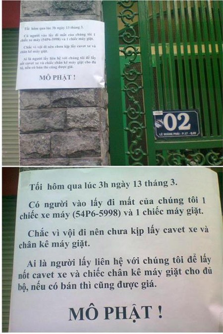 Còn đây là người mất đồ nhân hậu, mời trộm đến lấy nốt đồ cho... đủ bộ.