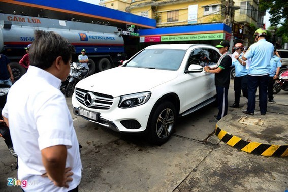 Ông Hải chỉ đạo xử lý một ôtô đậu sai nơi quy định vào chiều 16/9. Ảnh: Tùng Tin.