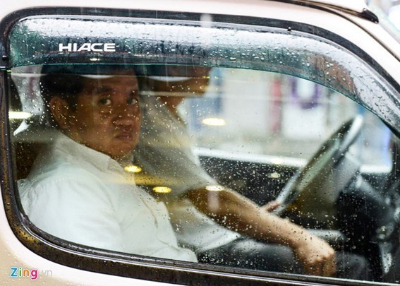 Ông Đoàn Ngọc Hải chủ yếu ngồi trên xe giám sát, chỉ đạo xử lý các trường hợp lấn chiếm vỉa hè. Ảnh: Tùng Tin.