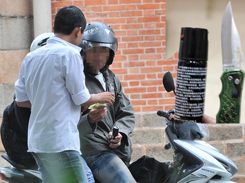 Nhiều loại hung khí, công cụ hỗ trợ cũng được rao bán khắp các trang mạng rao vặt. Sau nhiều lần trao đổi qua điện thoại, chúng tôi hẹn được một thanh niên tên Ph. để mua bình xịt hơi cay. Đúng hẹn, Ph. có mặt bên hông nhà thờ Đức Bà (Q.1), lôi trong ba lô một bình xịt hơi cay rồi giới thiệu: “Hàng này của Trung Quốc đã qua sử dụng, để lại cho bạn 150.000 đồng. Loại này xịt vào mặt sẽ gây sốc và ngạt hơi, cay mắt trong vòng 15 phút”.