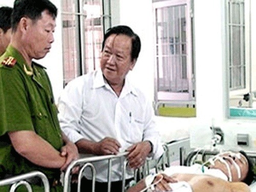 Chiều cùng ngày, Công an huyện Thới Bình tổ chức đoàn đến Bệnh viện đa khoa Cà Mau thăm hỏi, hỗ 1,5 triệu đồng cho anh Khánh, mong anh sớm bình phục.