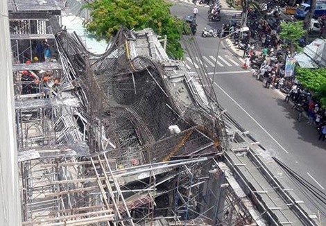 Hiện trường vụ sập giàn giáo. Ảnh: Người lao động