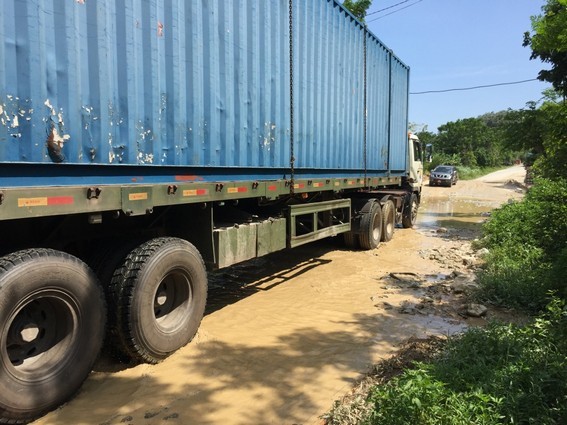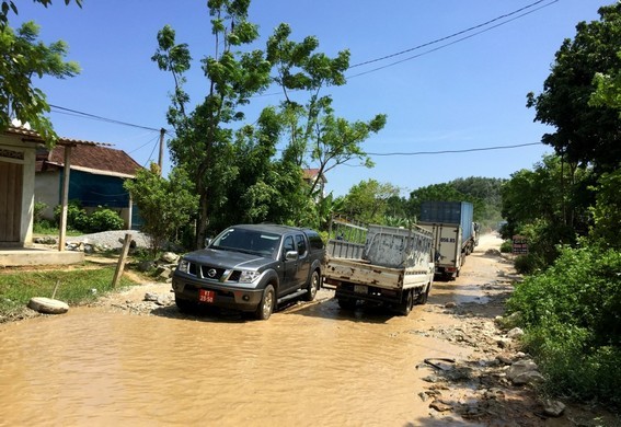 Những chiếc xe trọng tải lớn gặp khó khi di chuyển qua con đường này.