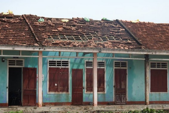 Thầy giáo Trương Quang Hà - Hiệu trưởng chưa hết bàng hoàng: “Dù đã có chuẩn bị phòng chống bão từ mấy ngày trước, nhưng cơn bão số 10 này quá lớn, gió giật kinh hoàng khiến một dãy lớp học bị tốc mái hoàn toàn, hơn 35% thiết bị dạy học bị hư hỏng, phần lớn sách vở trong thư viện nhà trường bị ướt, bàn ghế trong phòng họp hội đồng trường bị hư hỏng.