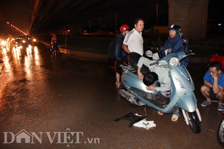 Hàng chục chiếc xe chết máy tại đường Nguyển Xiển trong đêm 3.5.