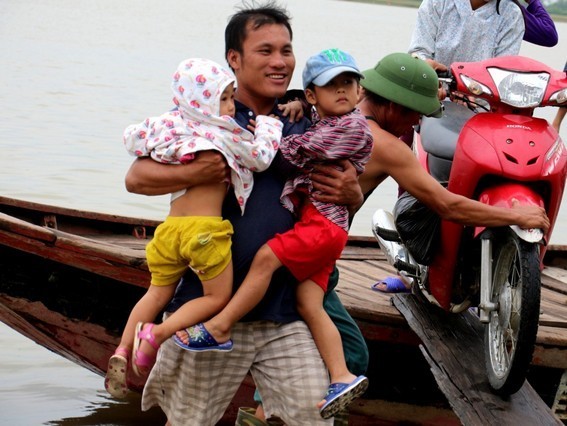 Cũng trong chiều nay, UBND xã Xuân Giang đã có mặt tại Ốc đảo Hồng Lam nằm giữa dòng sông Lam để đưa người dân ra khu vực an toàn.