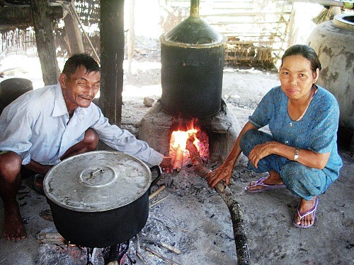 Vợ chồng ông Thái Ngọc bên lò nấu rượu