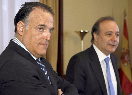 Ông Javier Tebas (trái) cho rằng bóng đá TBN bị dàn xếp