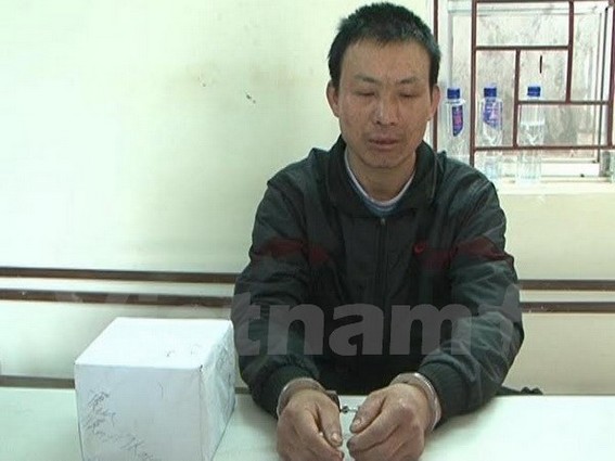 Đối tượng bị bắt cùng tang vật vụ ảnh. (Ảnh: Hữu Quyết/Vietnam+)