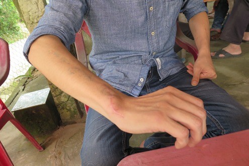 Nạn nhân Nguyễn Thành Tiên với những vết thương ở tay.
