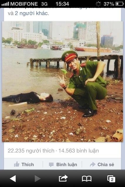 Cách đây không lâu, bức ảnh một người mặc áo công an tạo dáng rất xì tin bên một xác chết đã được lan truyền với tốc độ chóng mặt trên các trang mạng xã hội, blog.