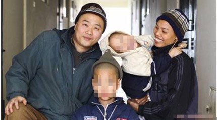 Vợ chồng Nguyễn Tuấn Nghĩa bên hai bé Lê Văn Phả và Nguyễn Thị Đức Hạnh.